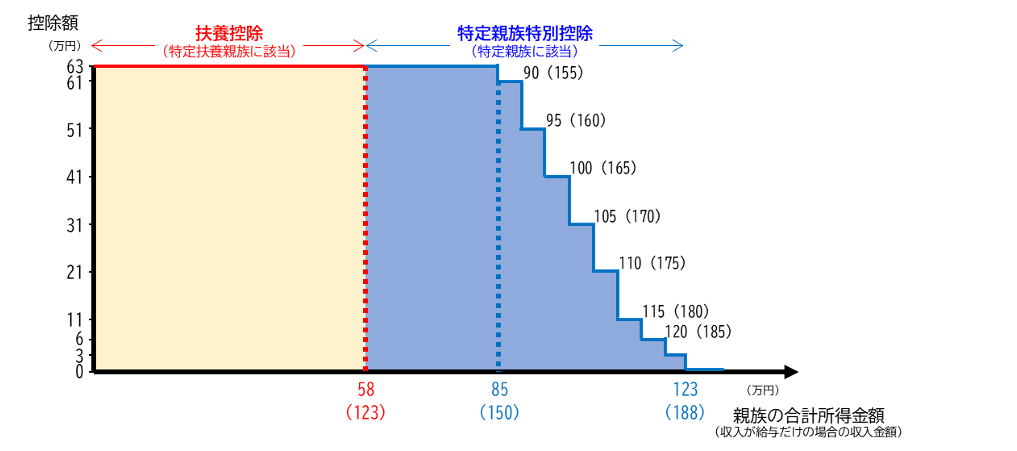 ⑺188万円の壁:Aの所得税における「特定親族特別控除」